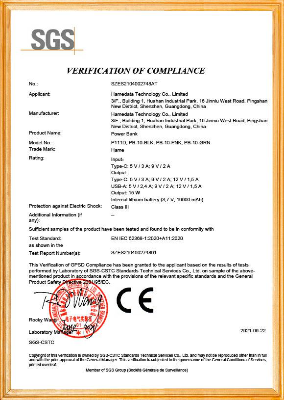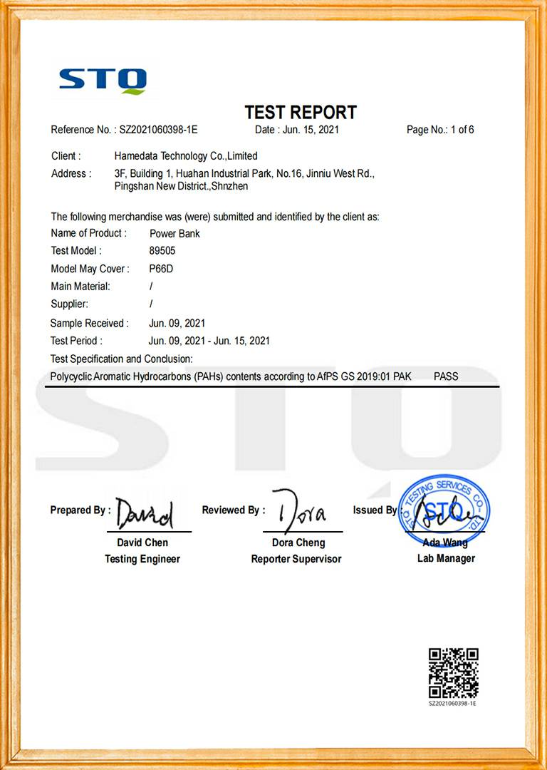 移动电源产品品质证书1