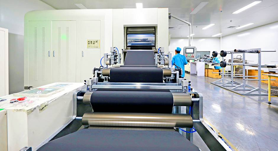 两条120米长高速涂布机,幅宽1000mm,采用热风冲击干燥技术,浆料密度均匀,无龟裂脱落等现象;